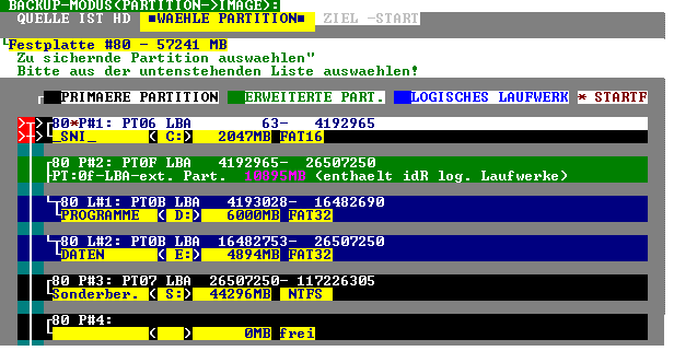 (Zielfestplatte) wird als Backup markiert, und in den weiteren Sektoren