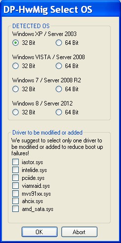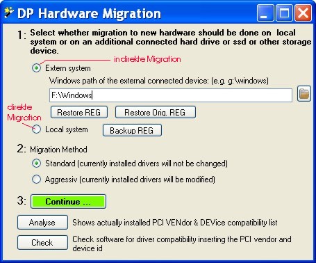 Sie das Programm bitte stets mit administrativen Rechten. Nach Start von 'DP Hardware Migration'