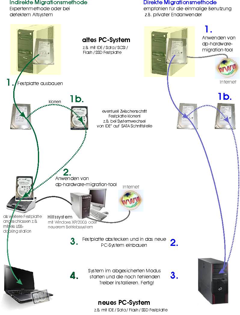 Migration: Einsatz von 'DP Hardware Migration' direkt auf der alten Systemfestplatte.