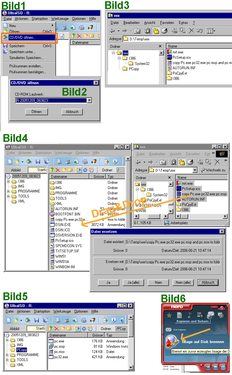 Die Dateien pc32.exe pc.exe pc.msp und PC.msx der InstallationsCD in