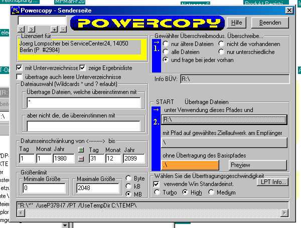 Powercopy wurde vorher auf beiden Seiten installiert.