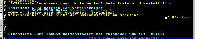 drücken Sie auf der Empfängerseite "Starte Datenempfang:"