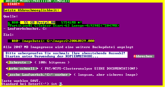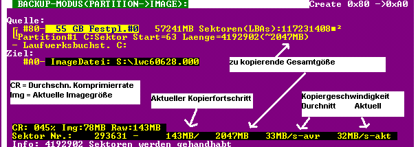 werden komprimiert und als sog. Image-Datei auf einer anderen Festplatte bzw.