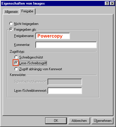 Laufwerke mit Powercopy anbieten.(Win 98/ME, Win2000/XP) -